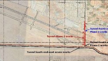 Description: The airport tunnel is approximately 540 m in length from the north ramp to the south ramp and accommodates dual lanes each way. The Phase 1 and 2 Scope of Works is to carry out civil works for the construction of approximately 500.02 m of tunnel length and includes the north and south portals.